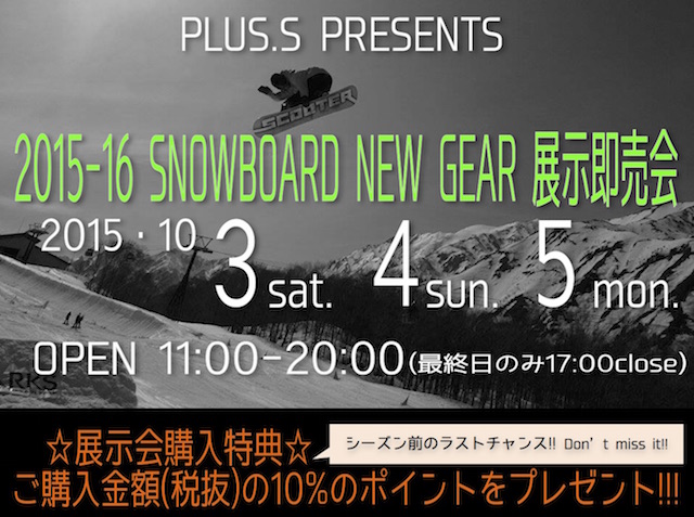 - 2015-'16 SNOWBOARD NEW GEAR展示即売会2015/09/30