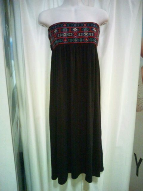 ウエスト部分にクロスステッチで刺繍をたっぷりと入れて華やかな印象のロングスカート